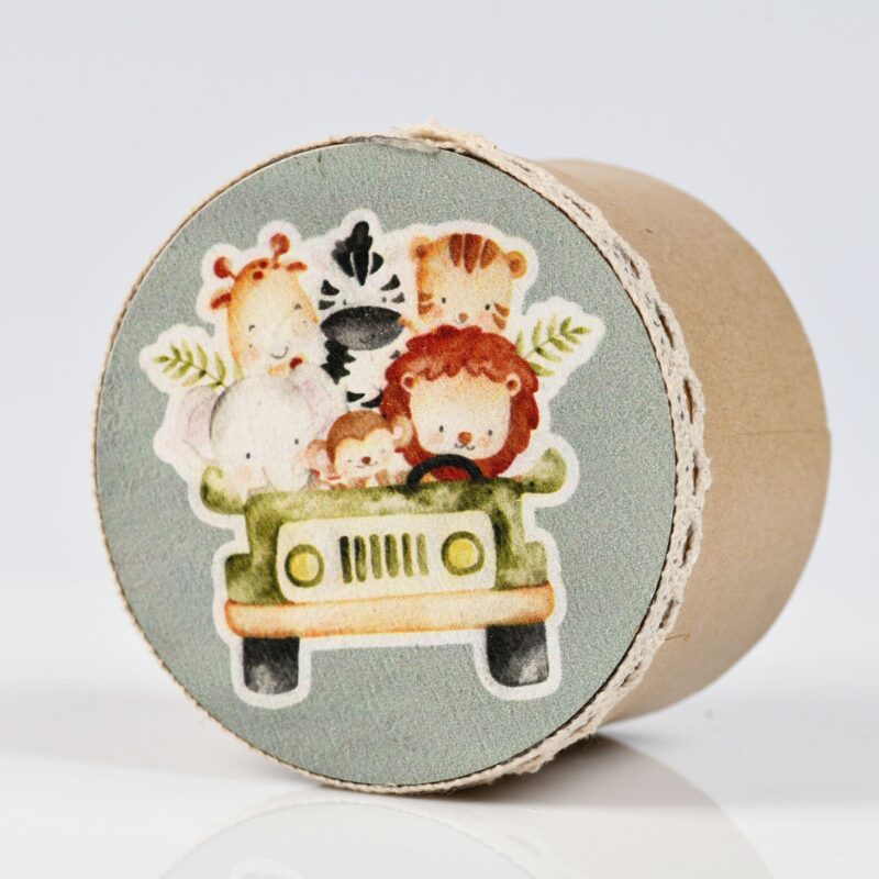 Κουτί μπομπονιέρας στρόγγυλο με ξύλινο φύλλο Φ10
