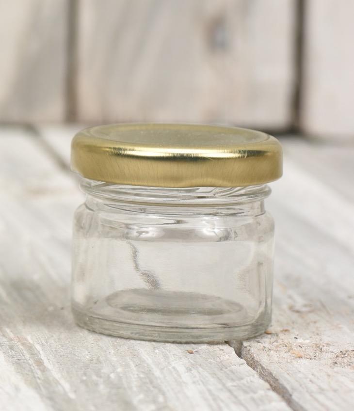 Μικρό γυάλινο βαζάκι με κομψό μεταλλικό καπάκι. Το compact μέγεθος των 30ml το καθιστά ιδανική επιλογή για οικονομικές και κομψές μπομπονιέρες.