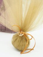 Ανακαλύψτε την κομψή μπομπονιέρα τούλι, ιδανική για γάμους, βαπτίσεις και άλλες εκδηλώσεις. Με διακριτική και ρομαντική εμφάνιση, το πουγκί τούλι με την όμορφη κορδέλα και το χρυσαφί στοιχείο δημιουργεί μία αίσθηση πολυτέλειας. προσφέροντας την τέλεια λύση για την εμφάνιση των μπομπονιερών σας σε ειδικές περιστάσεις. Αποστέλλεται σε 5-10 εργάσιμες ημέρες.