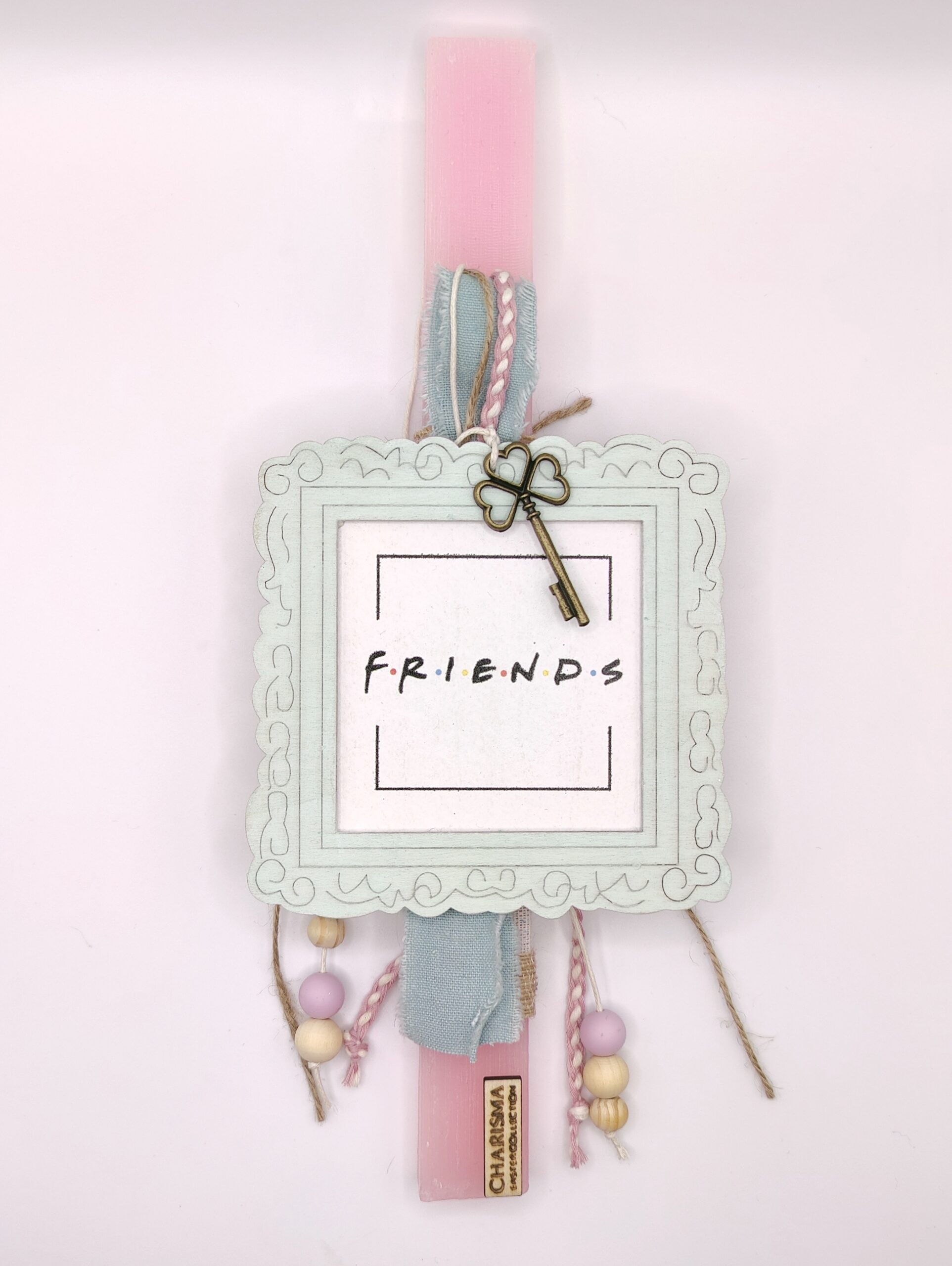 Ροζ Χειροποίητη Πασχαλινή Λαμπάδα με σχέδιο Friends
